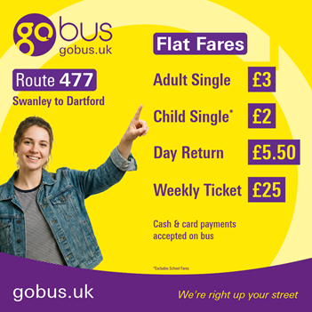 The GoBus 477 operates between Swanley and Dartford, six days a week.